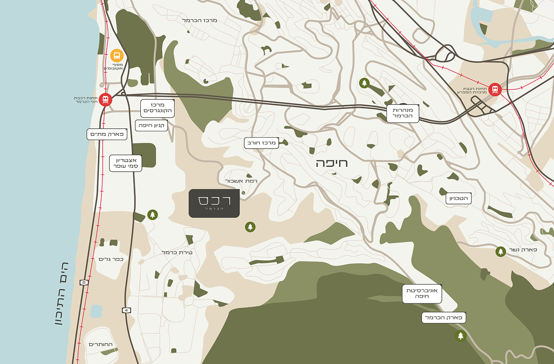 למתחם רכס הכרמל מיקום מנצח במבואות הדרומיים של חיפה, עם גישה מהירה לכביש 4, כביש החוף, דרך פרויד ומנהרות הכרמל. נסיעה קצרה מובילה לתחנה המרכזית חוף הכרמל, עם חיבור נוח לרחבי העיר והארץ.